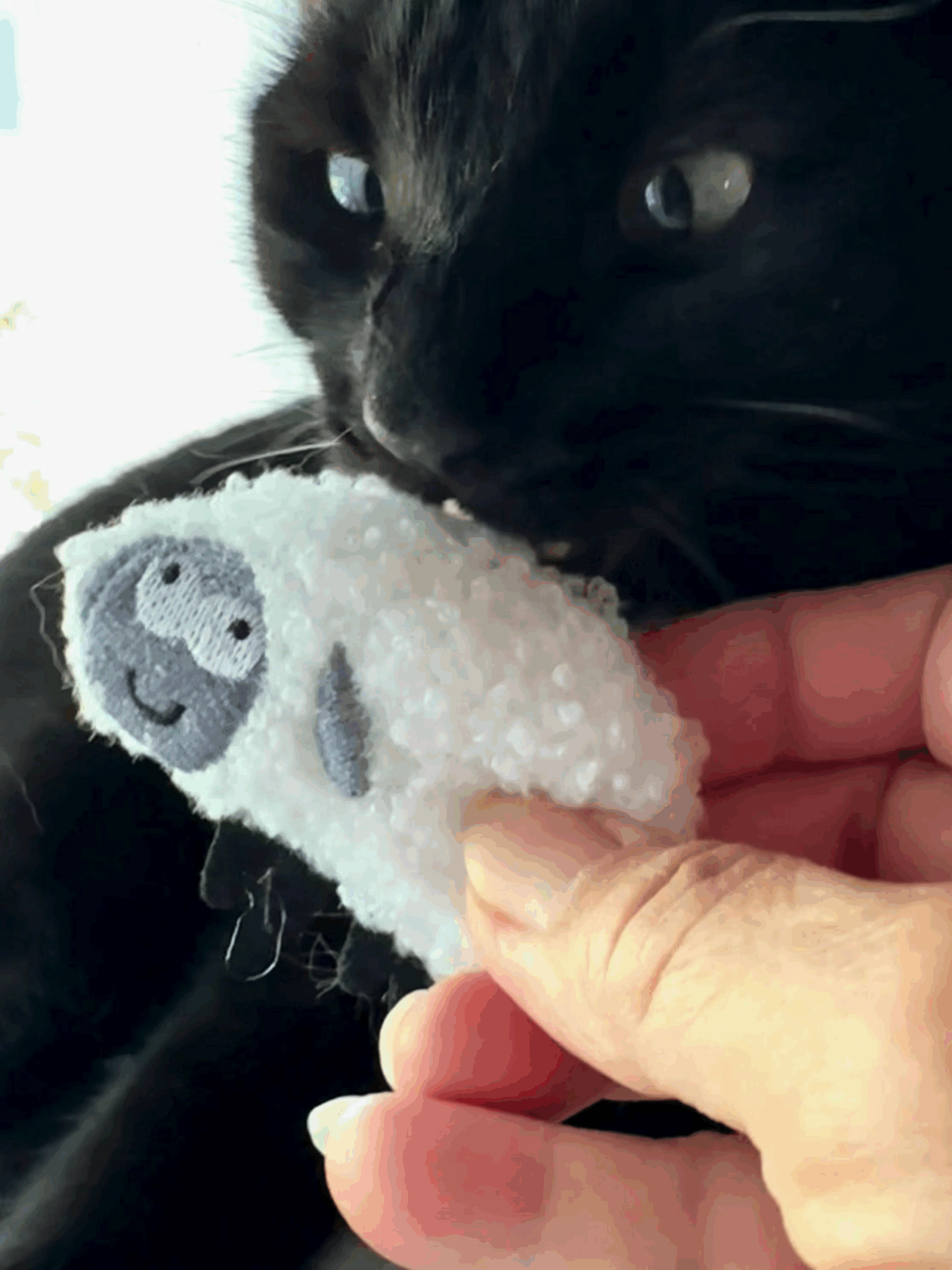 Cuddle up with this soft, silly smiling sheep! It’s a sweet birthday gift and stocking stuffer for cats, knitters and kids. If Wallace and Gromit had a kitten, this is what they’d pick. Kitties toss this small prey-sized sheep (or little Lamb Chop, if you prefer) around for interactive play, and some even sleep with it (counting sheep, perhaps?). Choose with or without our 5-Star Catnip, which is super potent and freshly ground to release extra-strength fun. It’s one reason why Etsy shoppers have made me a Star Seller, with rave reviews for over ten years.